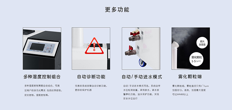 ※ 濕度數碼全自動控製,控製係統配備進口濕度傳感器,控製精度高、反應迅速。設定後連續工作, 無 需人員職守